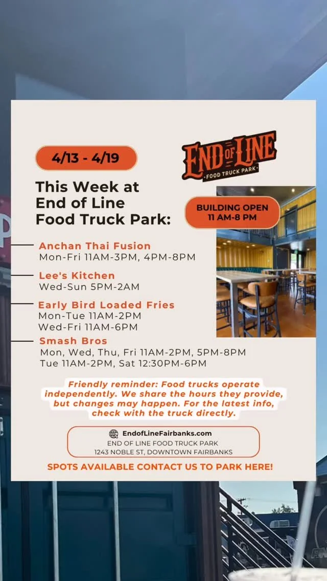 End of Line Fairbanks started as a vision to create a year round space for local food trucks, families, and friends to come together and enjoy delicious food in a family friendly environment.